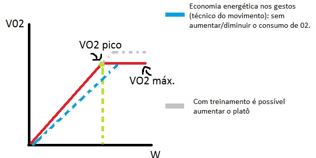 Atualmente, a avaliação da economia de movimento é mais importante do que a taxa de consumo máximo de oxigênio quanto às questões de desempenho. O valor do VO2 máximo informa relativamente como está o trabalho realizado pelo atleta. Treinamentos em carga submáxima são também eficientes para o aumento do consumo máximo de oxigênio, no entando, trabalhos mais intensos são mais efetivos. Quanto maior a participação anaeróbia, maior o déficit de oxigênio e maior a quantidade de lactato que tem de ser removida. A aceleração da remoção do lactato no intervalo de prova pode ser conseguida através da recuperação ativa -> do exercício aeróbico de baixa intensidade. A remoção de lactato se dá em função da ativação do sistema aeróbio oxidativo, já que a principal via de remoção do lactato é a oxidação da molécula. Após encerrado o exercício, o consumo de oxigênio é mantido elevado por um bom intervalo de tempo. Este tempo de recuperação é menor a medida em que o indivíduo é melhor treinado. Sendo assim:
