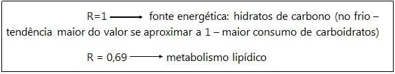 Através do resultado da razão entre os volumes expirados e inspirados de CO2 e O2 (VCO2/VO2) pode-se obter um índice: o RER (Respiratory Exchange Rate) ou TTR (Taxa de Troca Respiratória). Através dos valores de proporção estequiométrica (R), é possível supor as quantidades de lipídio ou hidrato de carbono que estão sendo catabolizados, estimando, desta forma, a rota metabólica predominante.