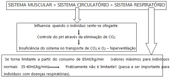 Aparelhos que compõe o sistema de consumo de oxigênio, organizados em ordem de influência na limitação do exercício (fadiga):
