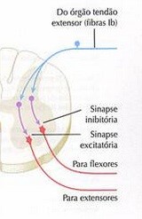 O reflexo miotático, então, decorre da estimulação do aferente IA devido ao estiramento muscular, seguida do envio do sinal adequado para a medula, onde, através de uma única sinapse, o neurônio motor ado agonista é estimulado, gerando contração muscular reflexa, e o neurônio motor a do antagonista é inibido, mantendo-o relaxado.