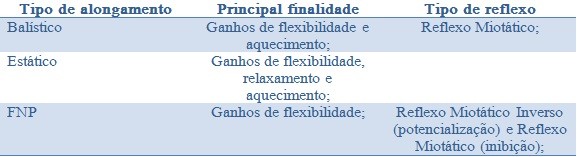 Alongamento Balístico: é o tipo de alongamento que está associado a movimentos insistentes, como por exemplo, pendulares, saltos e movimentos rítmicos.