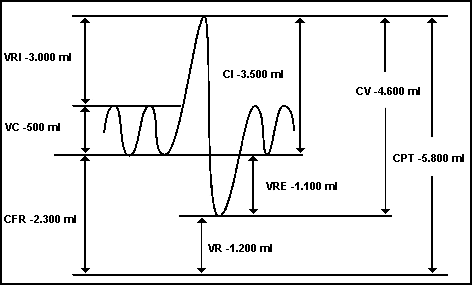 Volume residual: ar que permanece nos pulmões mesmo ao fim da mais vigorosa das expirações (aproximadamente 1200 ml ).