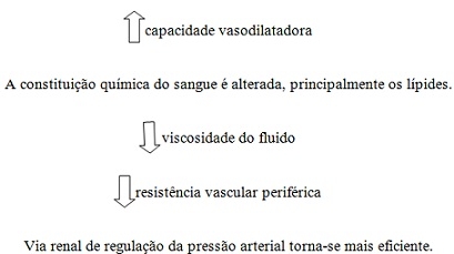 A atenuação do processo de arteriosclerose está envolvida nesta resposta frente ao exercício crônico, através da preservação ou mesmo do incremento da complacência vascular. Esta condição de complacência situa-se dentro de uma faixa ideal de produção de trabalho, evitando rigidez ou flacidez excessivas, sendo que esta última pode levar a um aneurisma, ou seja, a distensão do vaso devido ao rompimento de fibras elásticas, aumentando patologicamente o diâmetro do canal. Dependendo do calibre do vaso - a aorta, por exemplo -, o aneurisma pode causar queda de pressão, devido ao aumento do raio e, por conseguinte, diminuição da resistência. Via de regra, a correção do aneurisma é cirúrgica. Pode ser, também, que o treinamento físico altere a sensibilidade do neurônio responsável pela captação e transmissão dos estímulos de estiramento para o sistema nervoso central. Apesar da sua pronta eficiência na manutenção dos níveis fisiológicos de pressão arterial, os baroceptores são incapazes de regular a pressão a longo prazo, uma vez que podem reajustar-se a quaisquer novos valores de pressão arterial cronicamente mantida dentro de poucos dias. Além da postura corporal, a temperatura ambiente também é um fator importante para a estabilização da pressão. Quanto maior a temperatura, maior a tendência à vasodilatação e, conseqüentemente, à queda de pressão. Existe, ainda, um outro mecanismo extremamente importante para a regulação da pressão arterial, embora não totalmente esclarecido. Trata-se do sistema miogênico, ou seja, gerado a partir de trabalho muscular.