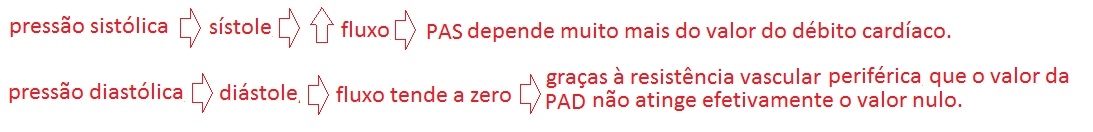 As pressões sistólica e diastólica são dadas pela mesma equação; a contribuição de cada uma das variáveis para a determinação do valor da pressão varia de acordo com os eventos do ciclo cardíaco no momento da medição. A pressão arterial sistólica depende do débito, enquanto a diastólica depende da resistência vascular periférica.