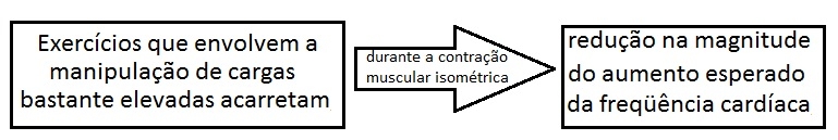Ou seja, a freqüência cardíaca não aumenta na proporção em que o faria, caso fosse a única variável envolvida no controle do fluxo sangüíneo. Tal fato decorre, em parte, do bloqueio respiratório realizado no momento da elevação da carga, o que implica em aumento agudo da pressão arterial torácica e, conseqüentemente, em ativação barorreflexa. A bomba muscular também contribui de forma efetiva para o incremento nos valores da pressão arterial. Quando o indivíduo encerra a série, este mecanismo depressor do aumento da freqüência cardíaca é desativado, e o número de batimentos sobe automaticamente. O bloqueio respiratório implica, na verdade, no impedimento do fluxo aéreo, seguido da tentativa de expiração, gerando forte pressão intratorácica e fazendo com que o coração contraia contra resistência dos vasos pulmonares, cervicais e torácicos, o que aumenta sobremaneira a pressão arterial. Esta manobra permite o aumento da geração de força, uma vez que a perfusão muscular torna-se maior, o que acarreta maior oferta de oxigênio e maior distensão de sarcômero, modificando a relação força x comprimento muscular, que torna-se mais próxima do ponto ótimo para a produção de força máxima (mecanismo de Frank-Starling muscular esquelético). Indivíduos em idade avançada possuem um sistema barorreflexo gradativamente menos eficiente, em função de degeneração simpática e arteriosclerose - uma vez que o estímulo para o desencadeamento do reflexo é a distensão dos terminais nervosos, situados na parede arterial, a rigidez patológica desta parede bloqueia ou dificulta o estiramento, atenuando o estímulo que chega ao mecanoceptor (ou pressoceptor).