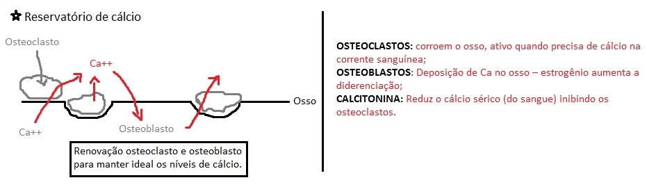 - Hipocalcemia: osteoclastos tiram Ca++ do osso para manter o Ca++ em níveis normais; Osteoclastos criam um "buraco" no osso, pela retirada do Ca++;