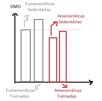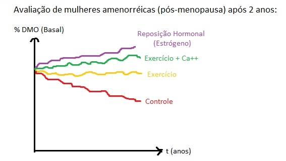 OBSERVAÇÃO: Amenorréia (pós-menopausa): Mesmo com o exercício a DMO não aumenta muito, é necessário aliar exercício + estrogênio! Se ingerir só cálcio ou só estrogênio a DMO não melhora, porque eles serão eliminados do organismo, é necessário aliá-los ao exercício.
